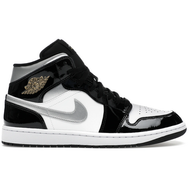 Air Jordan 1 Mid Patent Black Silver Metallic Gold