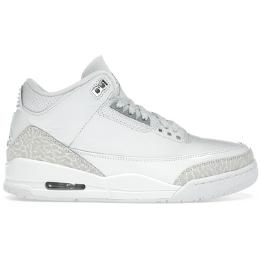 Jordan 3 Retro Pure Money (2025) står för en balanserad mix av enkelhet och lyx. Den helvita ovandelen i högkvalitativt läder kompletteras av diskreta elephant print-detaljer i samma färgton, vilket skapar en djup och taktil helhet. Den minimalistiska designen gör skon lika lätt att bära till streetwear som till mer uppklädda looks. En modell för dig som gillar subtila statement-sneakers med premiumfinish.